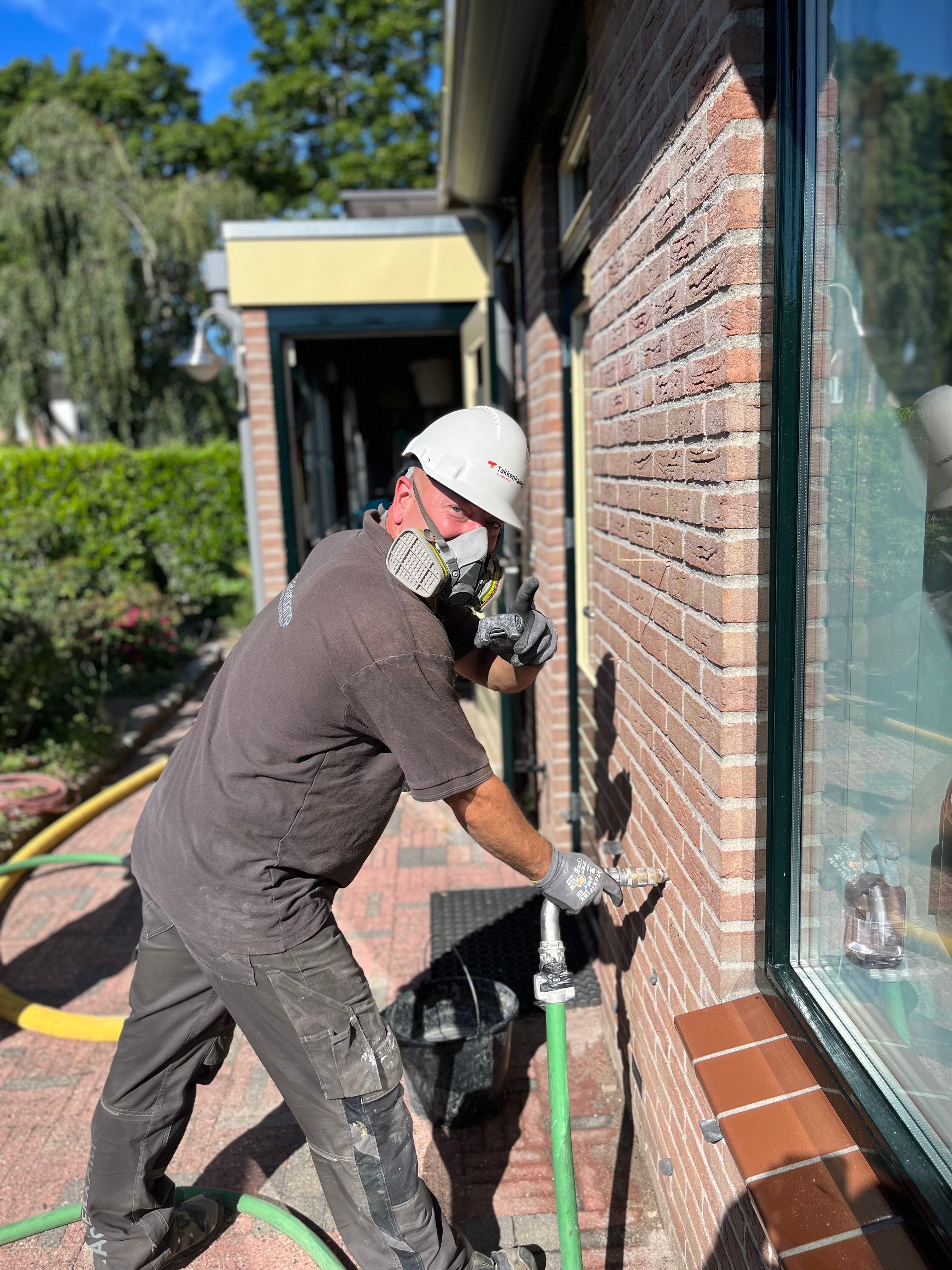 Tijdens de inspectie bleek dat er al een glaswoldeken in de spouwmuur zat. Door een zorgvuldige berekening vooraf wisten we exact hoe ver de woldeken in zou drukken wanneer we hier Airofill® aan toe zouden voegen. Hierdoor konden wij nauwkeurig berekenen hoeveel Airofill® wij konden spuiten om de beoogde RC-waarde in de spouwmuur te realiseren. In totaal hebben we voor 77m2 van het isolatiemateriaal toegepast en daarmee de woning klaar gemaakt voor de toekomst.